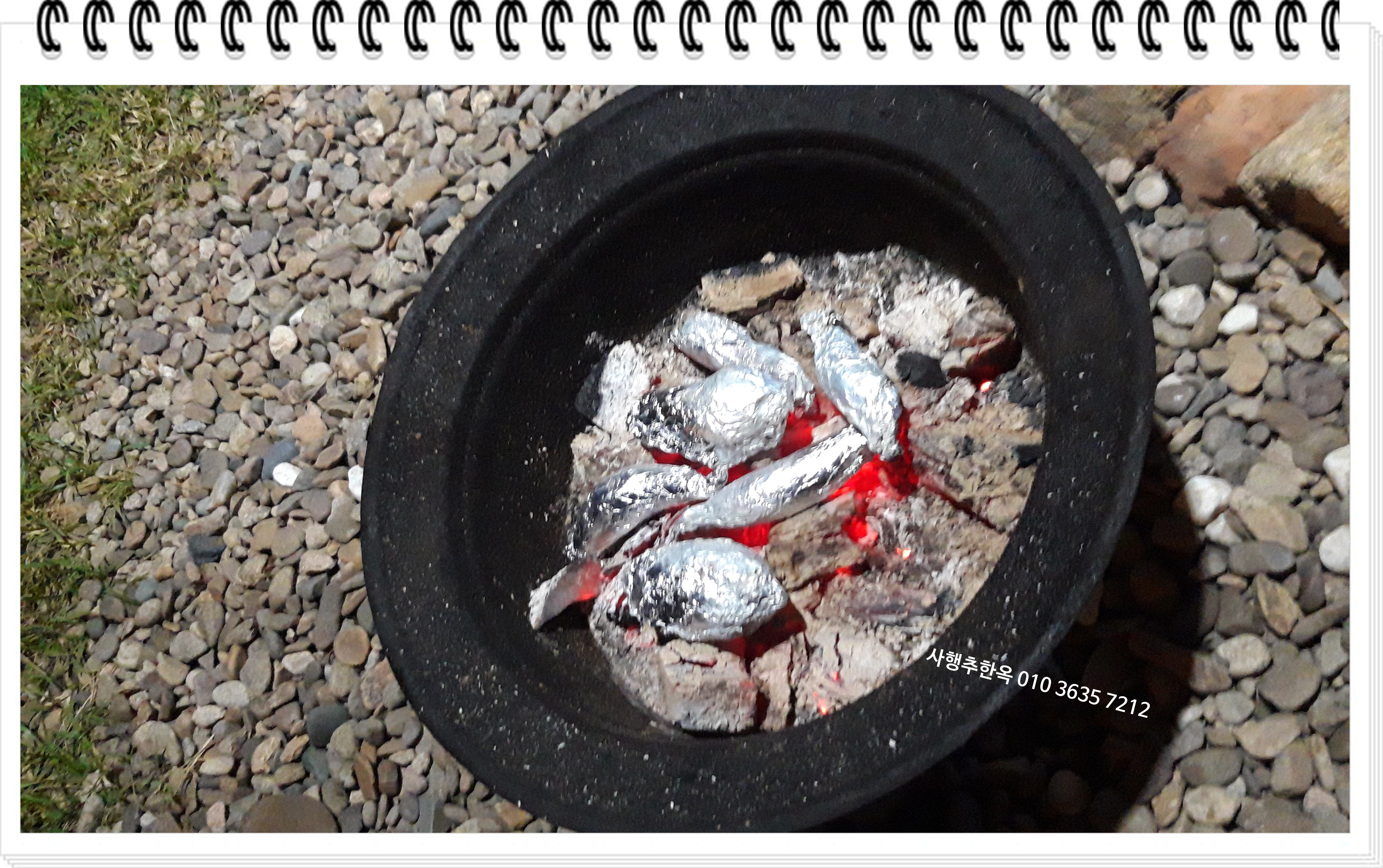 무쇠팬에 고기를 구우며