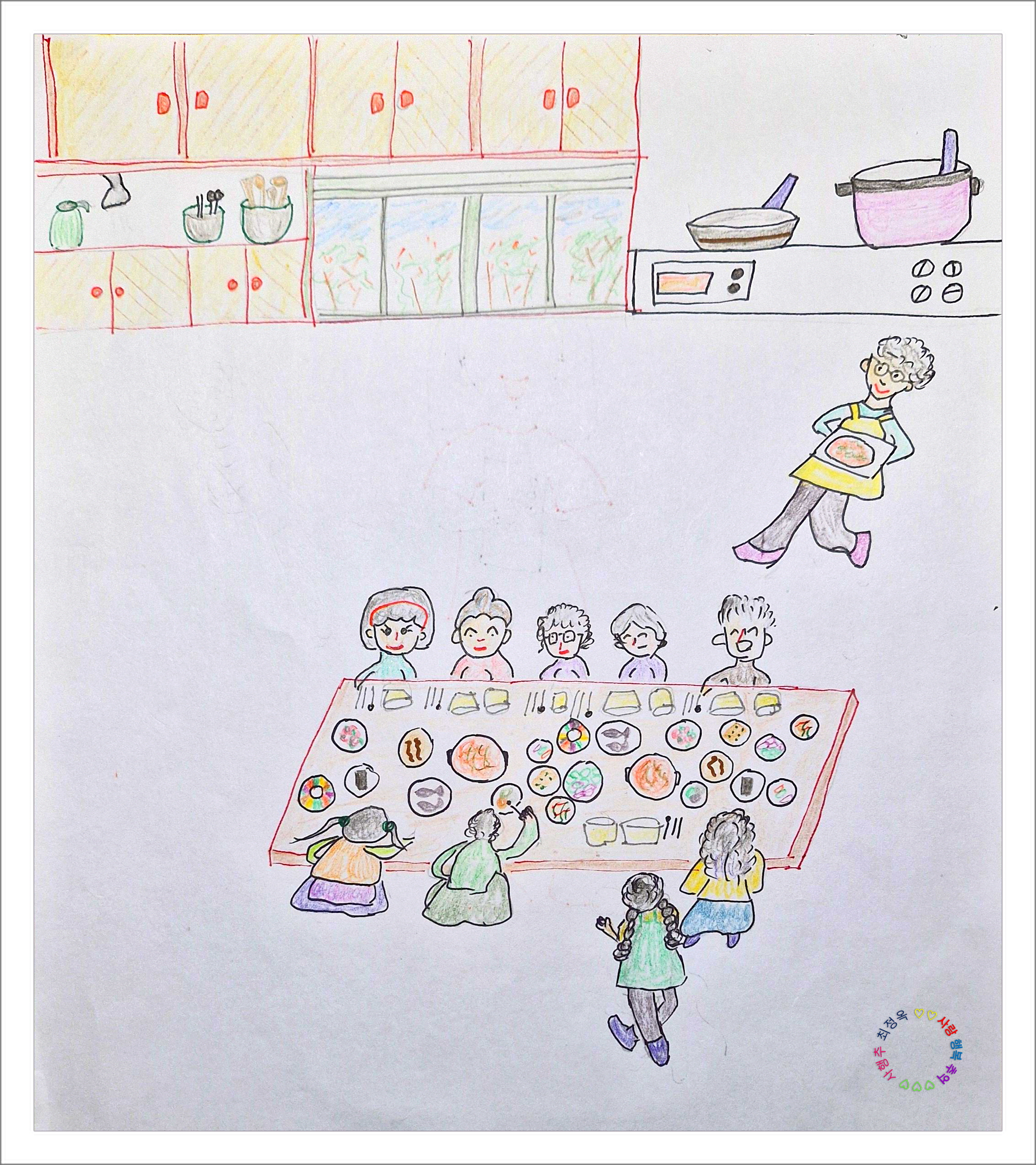 여섯 살 아이의 그림처럼 그려놓고