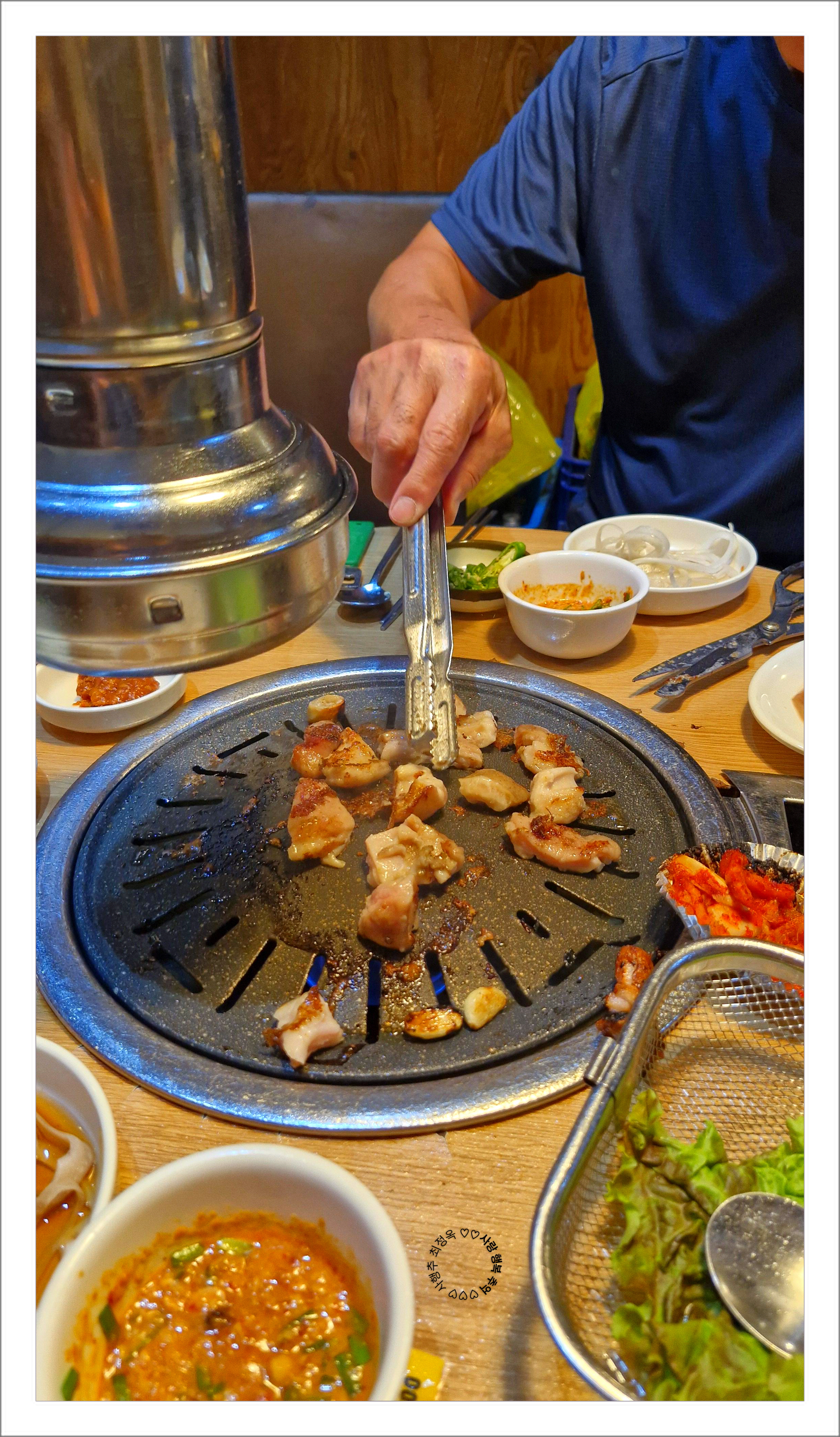 돼지갈빗집에서 숯불 피워주던