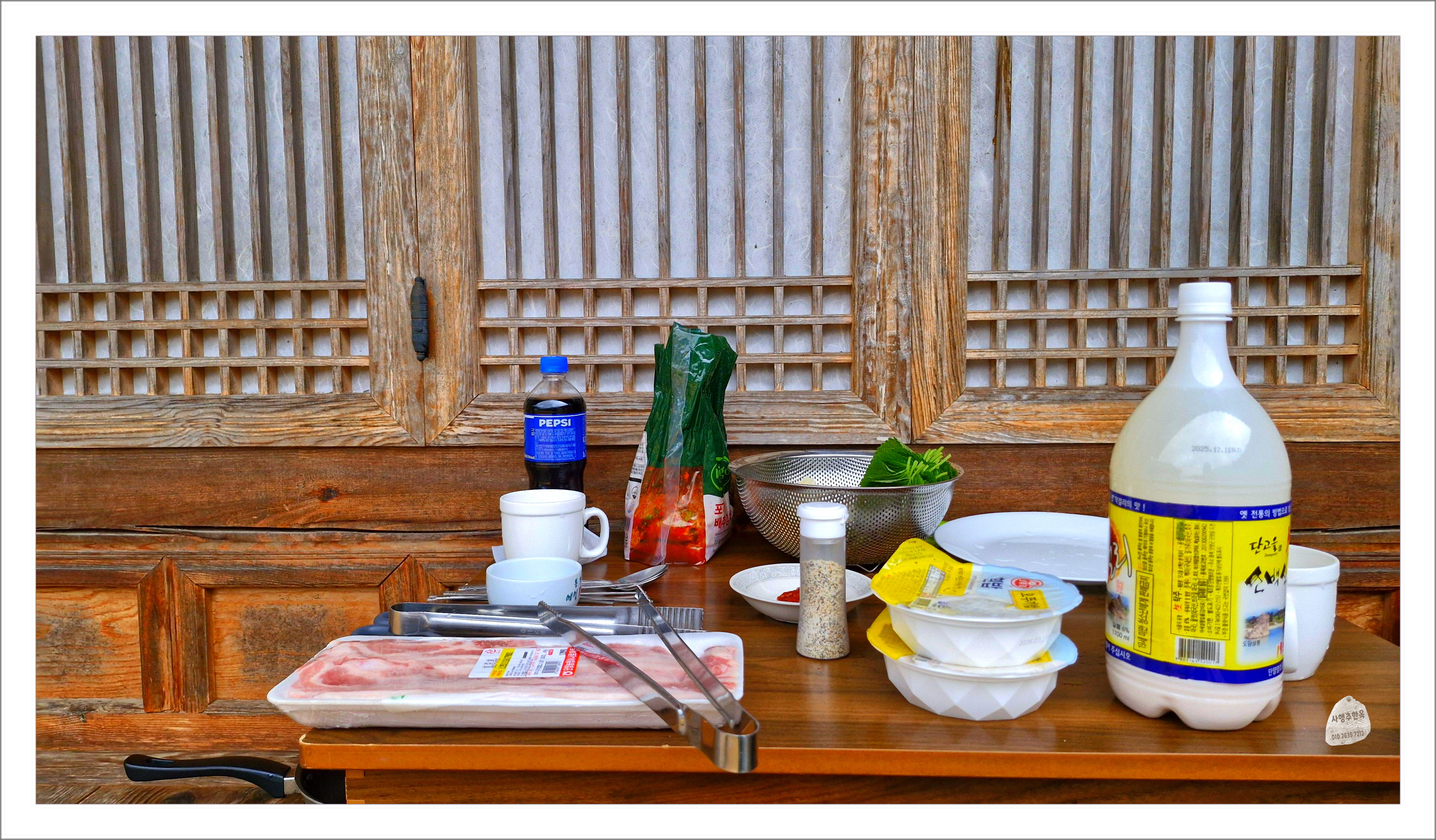 툇마루에 식사 준비를 해드렸습니다 。。。